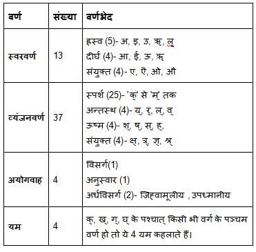 वर्ण:- भाषा की सबसे छोटी ईकाई को वर्ण कहते हैं। वर्ण के प्रकार इस प्रकार के होते हैं-
