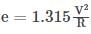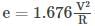 For a broad gauge railway track on a horizontal curve of radius R (in m) the equilibrium can't be required for a train moving at a speed of V (in km per hour) is: