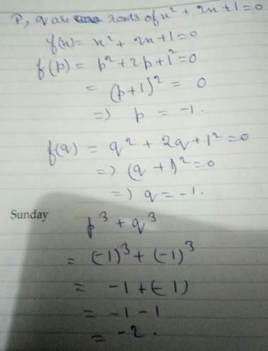If p and q are the roots of x2 + 2x + 1 = 0 then the values of p3 + q3 becomes