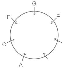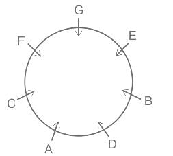 A, B, C, D, E, F and G are seated around a circular table with faces at each other. F is next to the left of C and G is second to the left of C. A is seated third to the left of E. B is between D and E. Who is sitting to the immediate right of B?