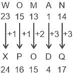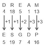 In a certain code language, if WOMAN is coded as XPODQ, then how is DREAM coded in that language?