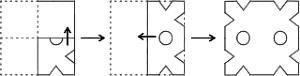 The sequence of folding a piece of paper and the manner in which the folded paper bas been cut is shown in the following figures. How would this paper look when unfolded?