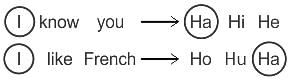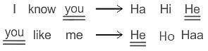 In a certain code language, 'I know you' is written as 'Ha Hi He', 'I like French' is written as 'Ho Hu Ha' and 'you like me' is written as 'He Ho Haa'. How will 'me' be written in that language?