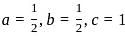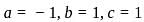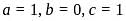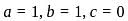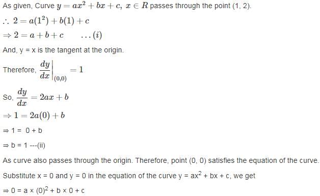 If the curve , passes through the point (1, 2) and the tangent line to this curve at origin is y = x , then the possible values of a, b, c are: