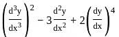 The order and degree of the differential equation (d3ydx3)2−3d2ydx2+2(dydx)4 = y4 are :