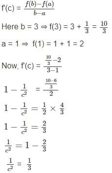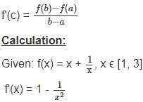 For the function f(x) = x + , x ∈ [1, 3], the value of c for mean value theorem is