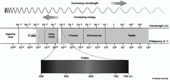 What is the approximate range of wavelength in case of visible lights?