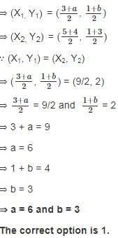 Points A (3, 1), B (5, 1), C (a, b) and D (4, 3) are vertices of a parallelogram ABCD. Find the values of a and b.