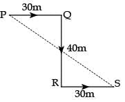 Amit walked 30 metres towards East, took a right turn and walked 40 metres. Then he took a left turn and walked 30 metres. In which direction is he now from the starting point?