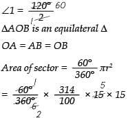 A chord of a circle of radius 15 cm subtends deals an angle 60° at the centre find the area of corresponding minor segment of the circle. (use π = 3.14 and √3 = 1.73)