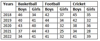 The data given in the following table shows the number of boys and girls enrolled for different games in an academy over 5 years.