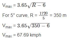 What will be the cant deficiency (cm), if maximum safe speed on a 5 Degree curve of a broad gauge track is 110 km/h and average speed of train is 85 km/h?
