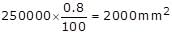 What will be the minimum required area of longitudinal reinforcement in a short axially loaded square column (Fe 415 steel and M20 concrete), if its gross cross-sectional area is 250000 mm2?