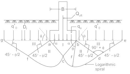 In Terazaghi's theory of bearing capacity of shallow foundation, which of the following zones is assumed to act as if it were part of the footing