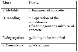 Match the items under List I (Terms associated with placing of concrete) with those under List 2 (Definition of the phenomena). Use codes in lists for matching.