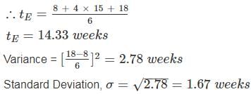 The optimistic, most likely and pessimistic time estimates of activity are 8, 15 and 18 weeks respectively. The Probable range of completion time of the activity will be