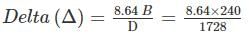 Find the delta for a crop when its duty is 1728 hectares/cumec on the field, the base period for the crop is 240 days.