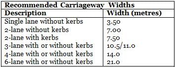 The minimum width recommended for kerbed urban road, so as to give allowance for stalled vehicle is: