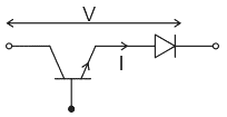The following figure shows a composite switch consisting of a power transistor (BJT) in series with a diode. Assuming that the transistor switch and the diode are ideal, the I-V characteristic of the composite switch is