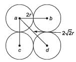 The geometric mean radius of a conductor, having four equal strands with each strand of radius r, as shown in the figure below, is
