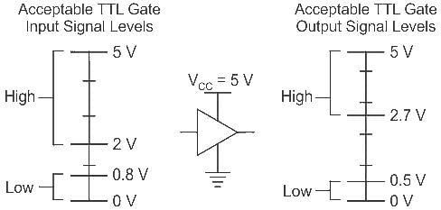 What are the logic levels in case of TTL logic using +5V as VCC?