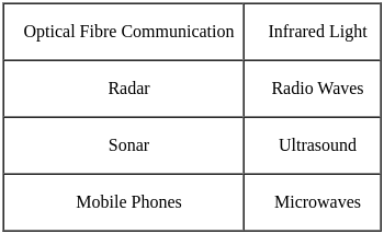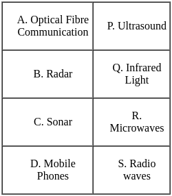 Given below in the left column are different modes of communication using the kinds of waves given in the right column.