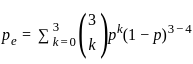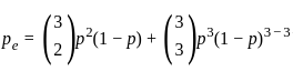 In order to increase the reliability of binary communication channel, the transmitted digits are 000 for 0 and 111 for 1. At receiving end, the decision is made by majority rule, that is, if at least two of three digits are 0, decision is taken in favour of 0 and so on. If p is error probability of one digit and pe is probability of making wrong decision in this scheme, then pe is: