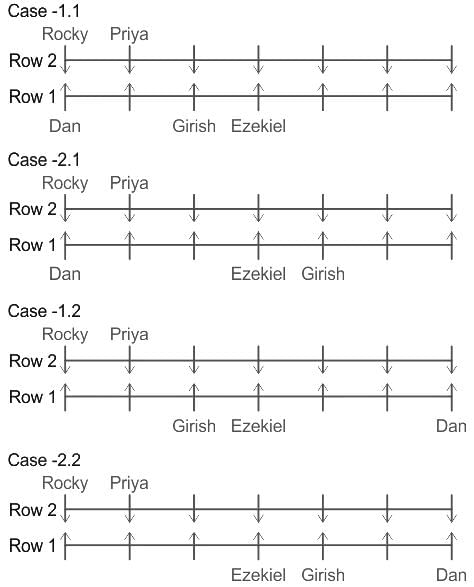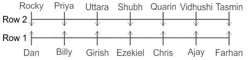 How many people sit between the one sitting opposite Billy and the one sitting opposite Ajay?