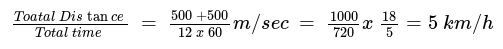 A boy goes to park from home 500 meter in 5 minutes. and return in 7 min utes his average speed is :