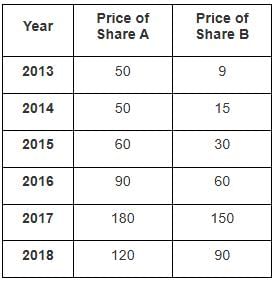 Share price of A in 2019 remain the same as in 2018 and share price of B decreased by 20% than that in 2018. What is the ratio between the share price of A in 2019 and share price of B in 2019?