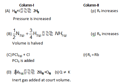 Left column : Represents an equilibrium situratton through a chemical equation and below each equation a stimulus is given which may or may not