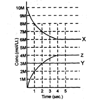 X,Y and Z react in the 1 : 1 : 1 stoichiometric ratio. The concentration of X, Y and Z where found to vary with time as shown in the figure below