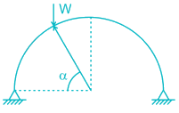 A two hinged semi-circular arch of radius R carries a concentrated load W at the crown. The horizontal thrust is
