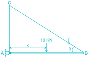 Find the maximum tension in the cable in KN if a unit load of 10 KN can move in either direction in the beam AB?