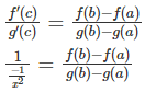 f(x) = x, g(x) = 1/x ; by using Cauchy mean value theorem mean value for the function in [a,b] will be