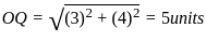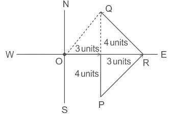 On a planar field, you travelled 3 units East from a point O. Next you travelled 4 units South to arrive at point P. Then you travelled from P in the North-East direction such that you arrive at a point that is 6 units East of point O. Next, you travelled in the North-West direction, so that you arrive at point Q that is 8 units North of point P.