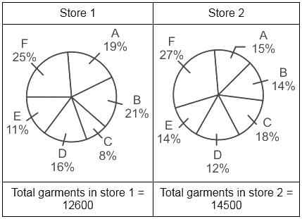 Percentage of six different type of garments in two stores are given below: