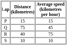 The distances covered during four laps of the journey are listed in the table below:
