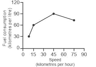 The fuel consumed by a motorcycle during a journey while traveling at various speeds a indicated in the graph below.