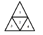 In the figure shown above, what is the maximum number of different ways in which 8 identical balls can be placed in the small triangles 1,2,3 and 4 such that each triangle contains at least one ball ?