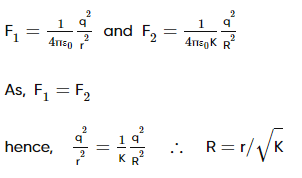 Two point charges exert on each other a force F when they are placed r distance apart in air. When they are placed R distance apart in medium of dielectric constant K, they exert the same force. The distance R equals