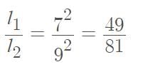 Two pendulums begin to swing simultaneously. The first pendulum makes nine full oscillations when the other makes seven. The ratio of the lengths of toe two pendulums is