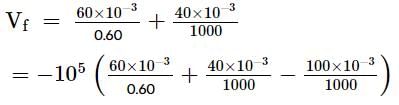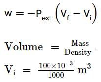 A heating coil is immersed in a 100 g sample of H2O (l) at 1 atm and 100oC in a closed vessel. In this heating process, 60% of the liquid is converted to the gaseous form at a constant pressure of 1 atm. The densities of liquid and gaseous water under these conditions are 1000 kg m−3 and 0.60 kg m−3, respectively. The magnitude of the work done for the process is -
