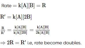 If the concentration of A is kept the same but that of B is doubled what will happen to the rate itself?