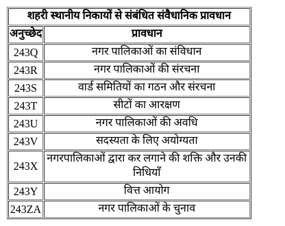 • नगर पालिका की समिति को परिषद का सभापति के रूप में जाना जाता है। अत:, विकल्प 3 सही है।