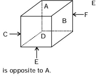 Six faces of the dice are A, B, C, D, E and F. A is adjacent to B. B is adjacent to D but not C. E is adjacent to D and F. What is the side opposite to A?