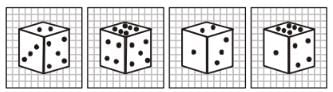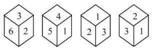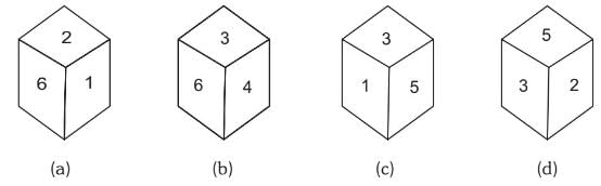 Four positions of a dice are given below. Identify the number at the bottom when top’s number is 6.