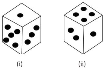 Two positions of a block are shown below (i) and (ii). When 2 dots is at the bottom which number of dots will be at the top?