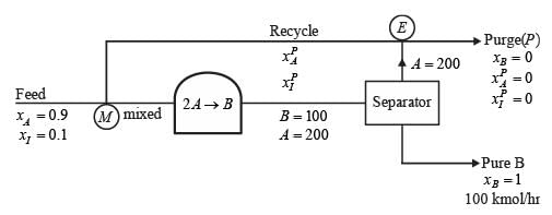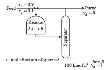 The flow rate of A in the purge stream, expressed in kmol h−1, rounded to one decimal place, is _______.