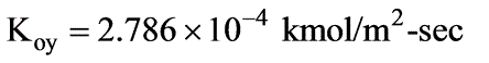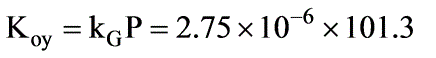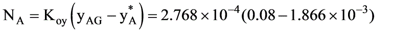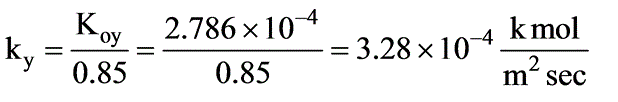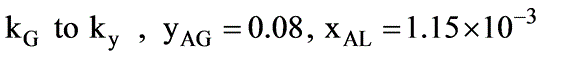 In a laboratory investigation regarding the absorption of ammonia by water in a wetted-wall column, the overall mass transfer coefficient, KG, was determined to be . At a specific location within the column, the gas and liquid phase compositions were recorded at 8.0 and 0.115 mole % NH3, respectively. The system was maintained at a temperature of 300 K and a total pressure of 1 atm. It was observed that 85% of the overall resistance to mass transfer occurred in the gas phase. At 300 K, ammonia-water solutions adhere to Henry’s law up to a concentration of 5 mole % ammonia in the liquid, with m = 1.64 at 1 atm pressure.
